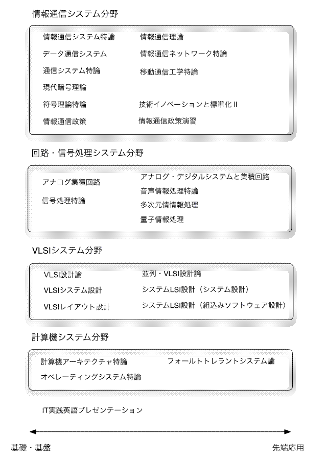 付図1に、通信情報工学専攻の4つの研究分野における各科目の位置付けを示す。