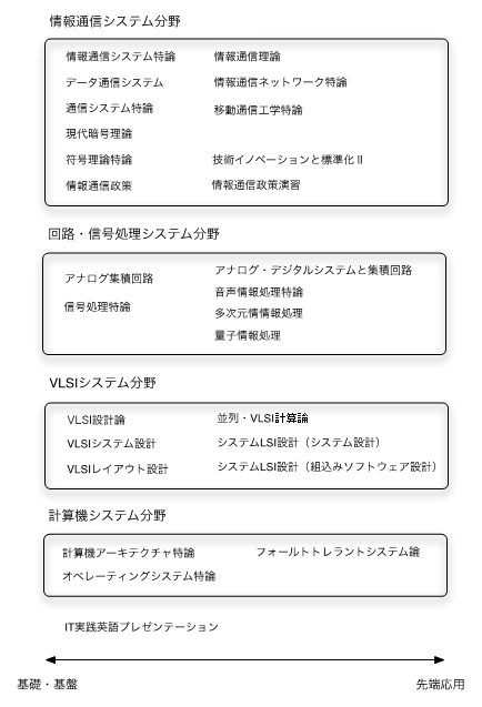 付図1に、通信情報工学専攻の4つの研究分野における各科目の位置付けを示す。