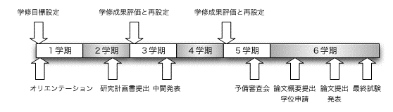 5学期後半の予備審査会、6学期に論文概要提出ならびに学位申請、